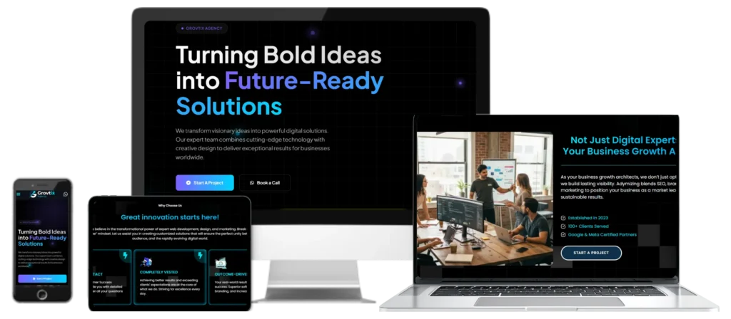 Grovtix Agency specializes in making intriguing websites. We create custom websites for a wide range of objectives, from portfolios to e-commerce platforms and online applications, all with a focus on user experience and conversion optimization.